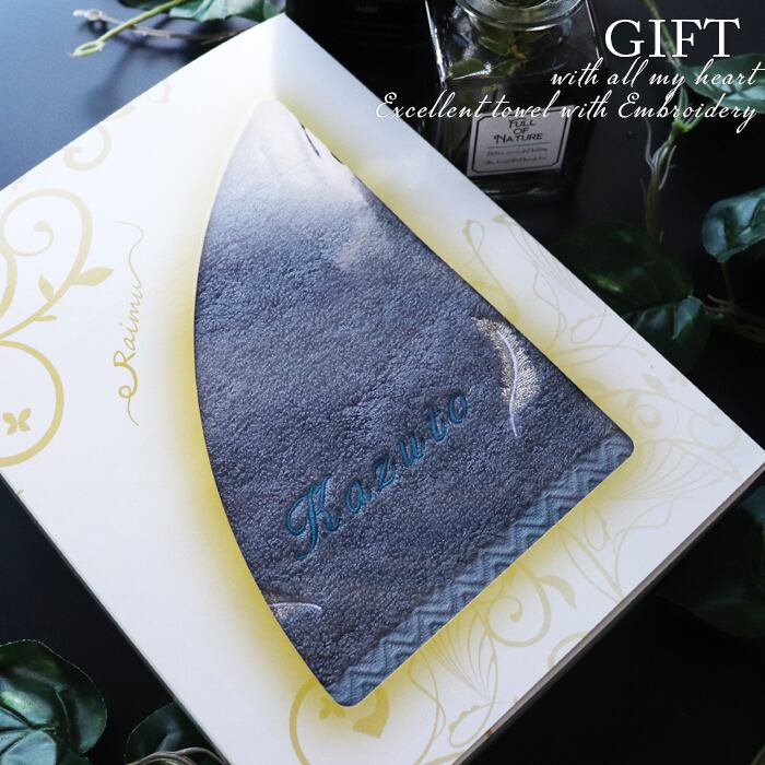 ギフトシーン向けの シルクのような肉厚のバンブータオルに羽 刺繍入り フェイスタオル ギフト BOXセット