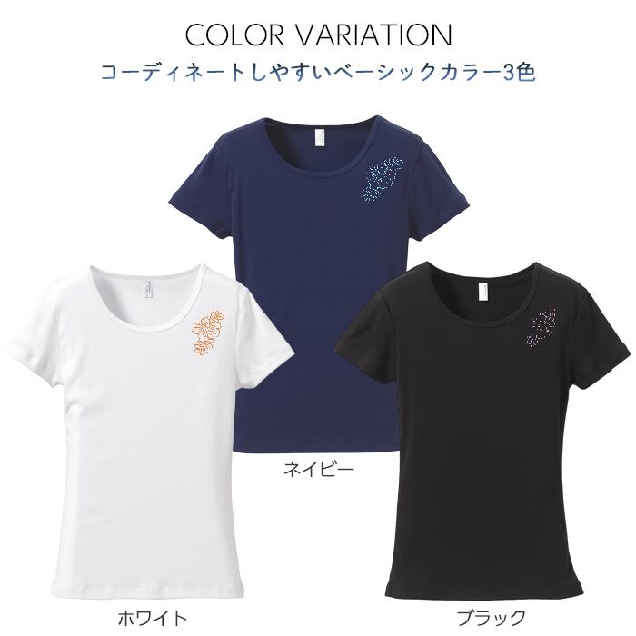 ボディラインにフィットし、女性らしさが光る ハイビスカス 刺繍入りフライスTシャツ