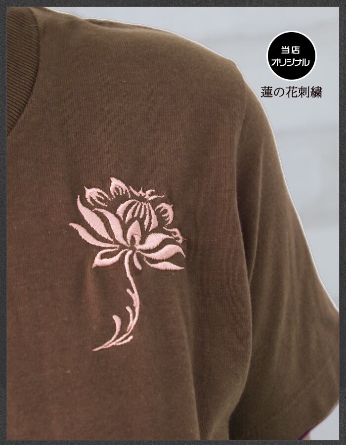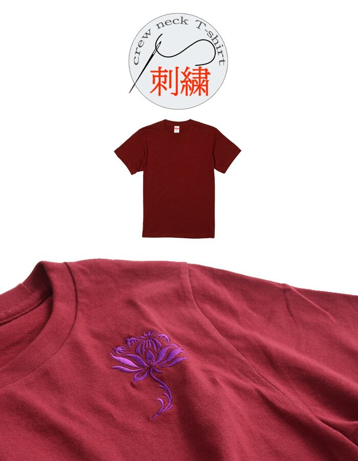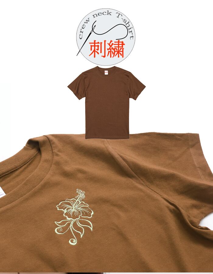 プチ ハワイ気分 選べるハイビスカス 蓮の花 刺繍入り クルーネック Tシャツ