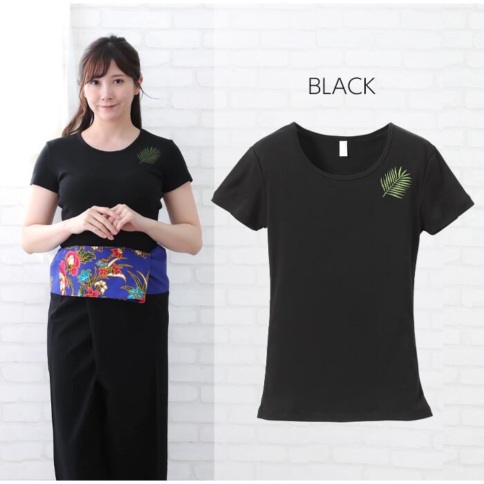ヤシの葉モチーフ刺繍入りフライス Tシャツ